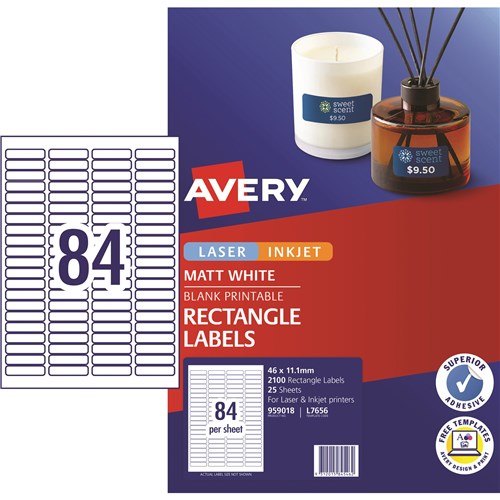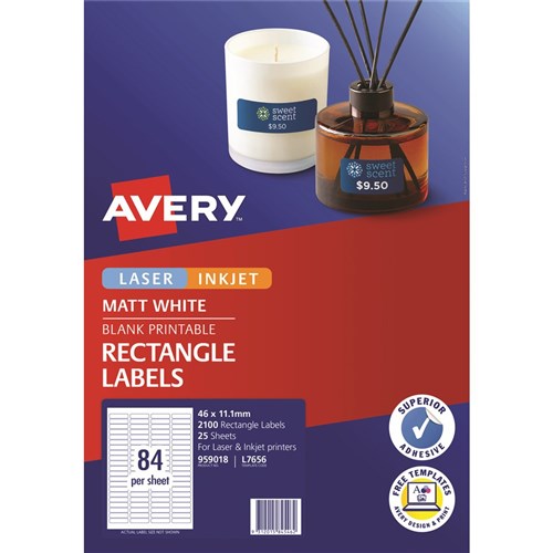 • Avery Blank Printable Labels L7656 46 x 11.11mm Rectangle Matte White 84UP 2100 Labels