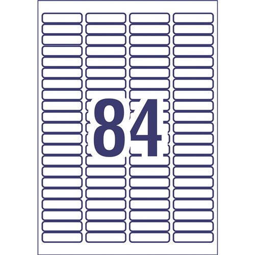 Organise your media for easy retrieval or archiving. Guaranteed jam free printing on laser printers. Compatible with Laser and Inkjet printers. Customise your labels with Avery Design and Print, available at averyproducts.com.au/print. Size: 46 x 11.11mm 2100 labels, 25 sheets. 84 labels per sheet (84UP).