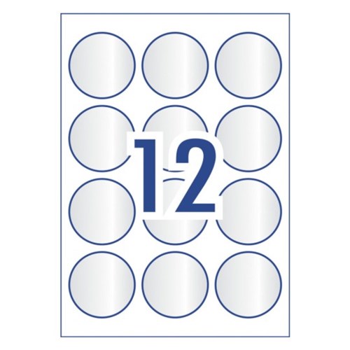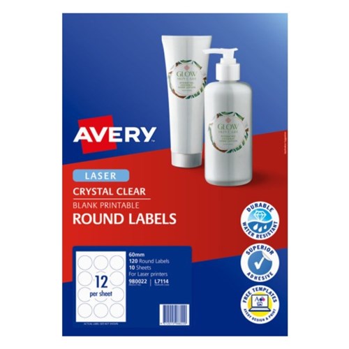Avery Crystal Clear Labels L7114 60mm Round Clear 12UP 120 Labels 10 Sheets