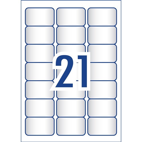 • Size: 63.5x38.1mm 525 labels, 25 sheets. 21 labels per sheet (21UP).