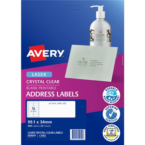 Avery Crystal Clear Laser Address Labels 99.1x34mm 16UP 160 Labels 10 Sheets 2324783 In Stock Low Stock Low Stock Please See Attributes