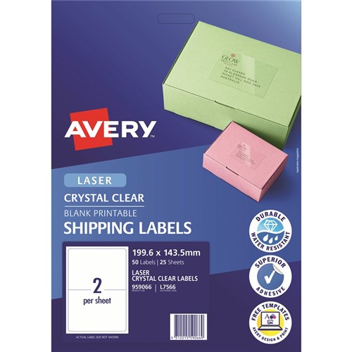 • Avery Crystal Clear Laser Shipping Labels White L7566 199.6x143.5mm 2UP 50 Labels