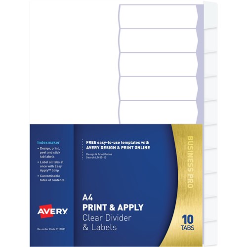 Avery L7455-10 Print & Apply Label Dividers A4 10 Tabs Clear 494588 In Stock Low Stock Low Stock Please See Attributes