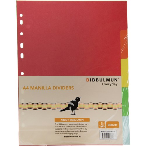 • Bibbulmun Manilla Divider A4 5 Tab Plain Bright Colours