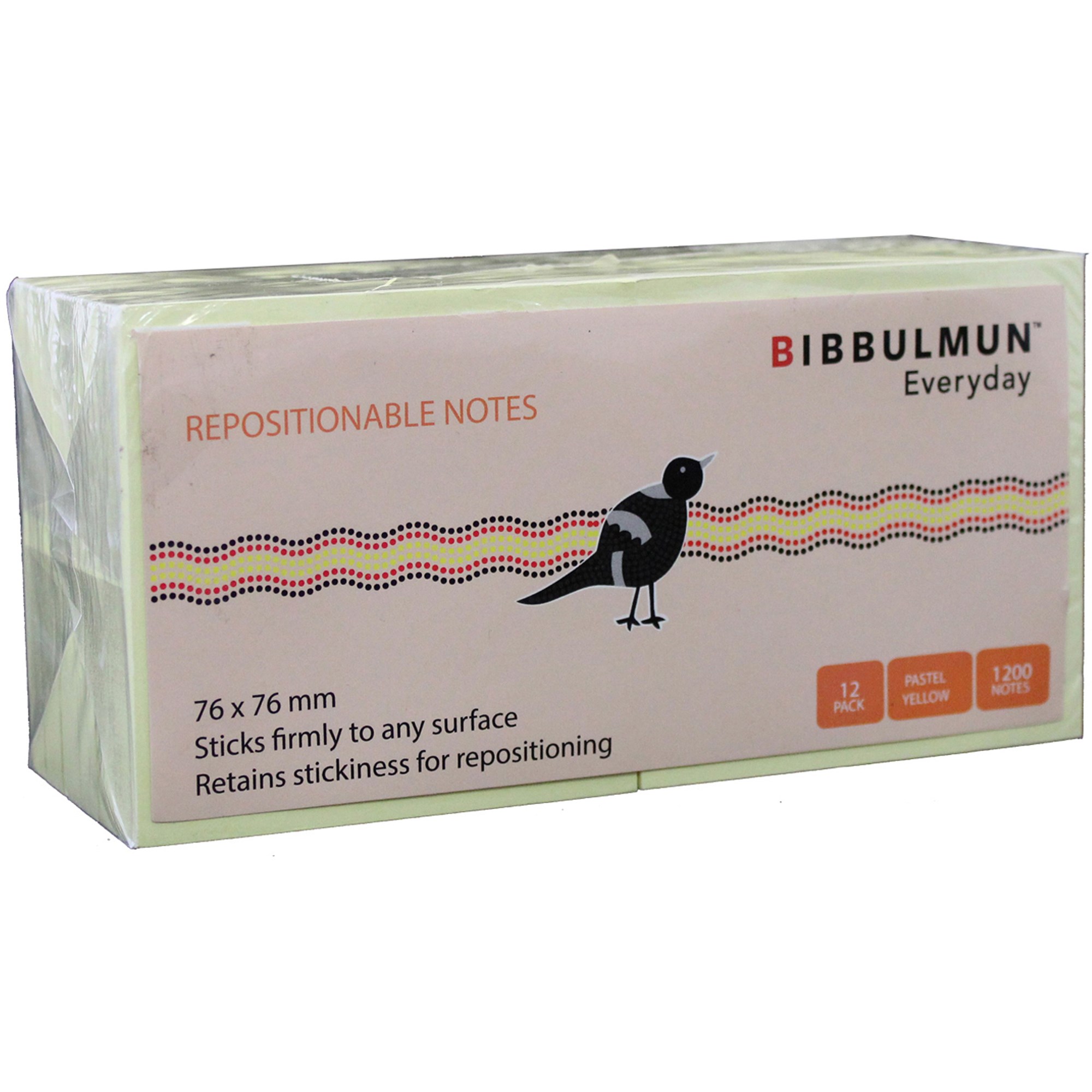 Bibbulmun Sticky Notes 76x76mm Yellow 100 Sheets Pad Pack of 12