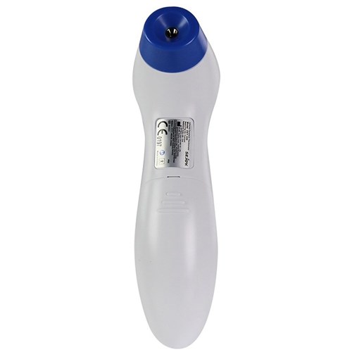 Non-contact, fast reading. 2 x AAA batteries included. Temperature is taken from the forehead. No probe covers needed. Up to 10 reading memory. The thermometer must be held 2-3 cm from the forehead for most accurate results. Dimensions: 153 x 41 x 44mm. Battery life: Approx 1 year / 6000 readings.