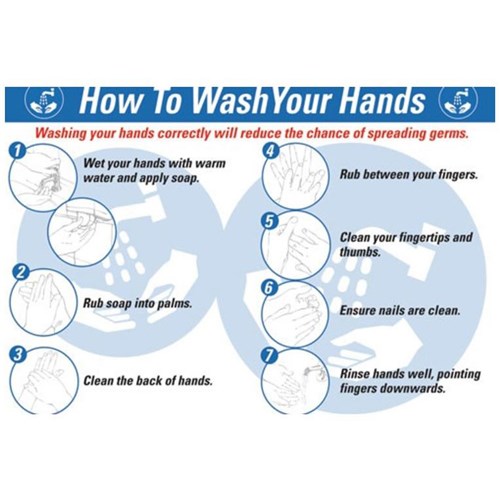 Wording: How To Wash Your Hands Step Guide. Material: Semi-rigid PVC poster.