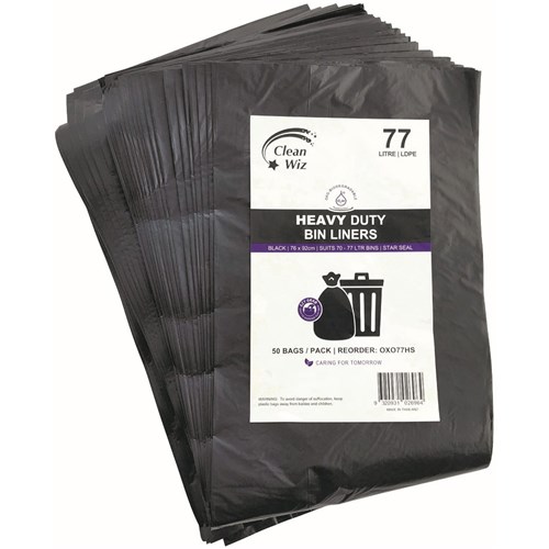 Clean Wiz Oxo-Biodegradable Heavy Duty Bin Liner 77 Litres Black Pack Of 50