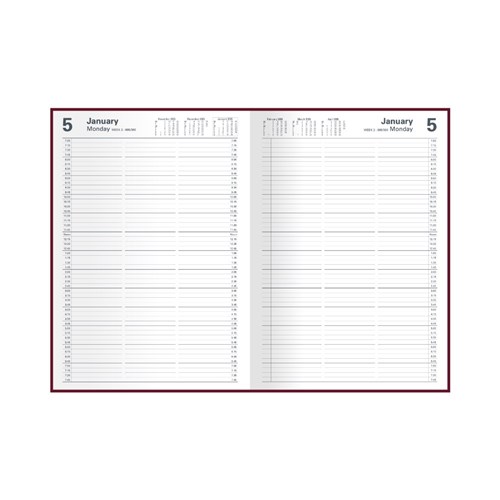 • Bound in a soft-look burgundy cover, section sewn for extra strength and with times printed clearly down each page.