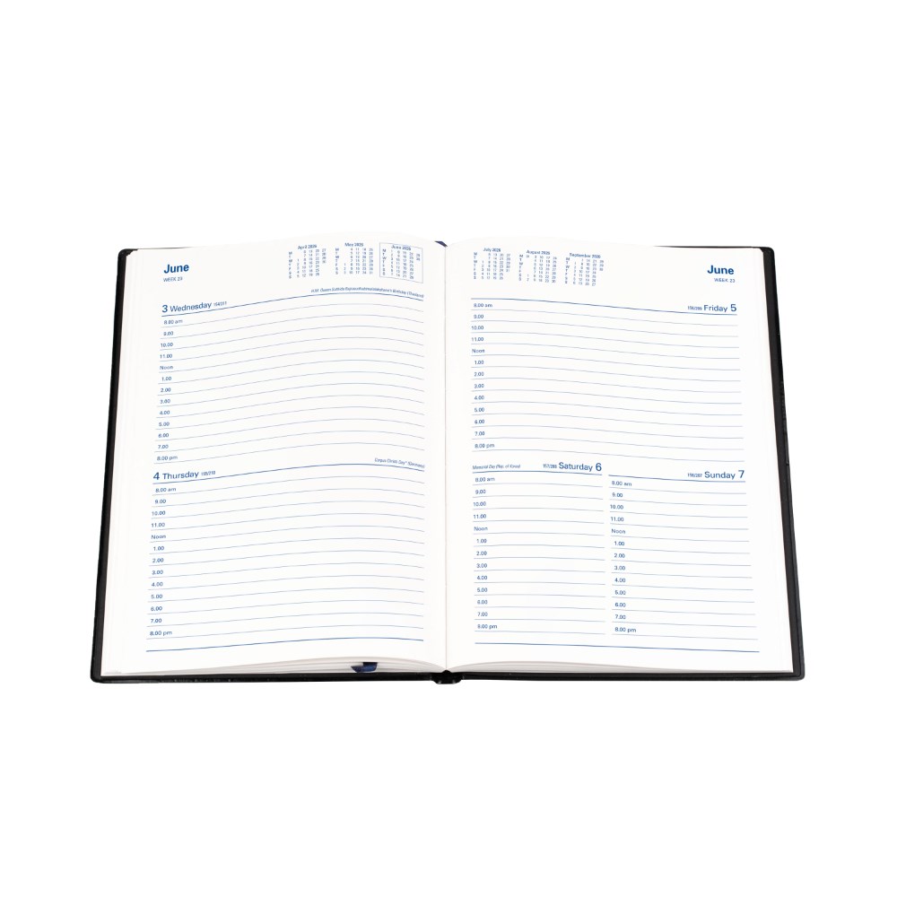 • Bound in a highly durable, welded PVC padded cover. Printed on white paper, week numbers and Julian days.