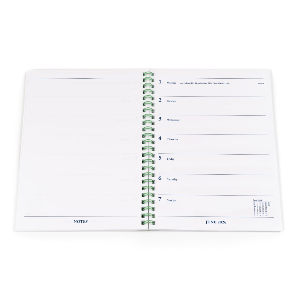 This Colplan planner offers reliable and easy-to-use format in a practical A5 wire weekly notebook. Australian and New Zealand holidays. Tried and tested layouts. Perfect for easy-to-read planning. Size: 210 x 148mm. FSC Certified.