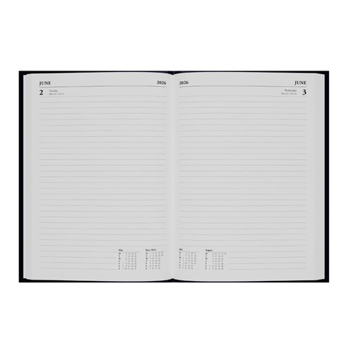 The planning 'Essential' dated range, offers excellent value for money and a host of practical features. Practical layout that will suit academic and personal use, in the classroom, office, at home, and on the go. Available in Week to view and Day to a page layouts. Durable leather grain covers. Gold foiled date stamp. Personal directory. Yearly planners. Ribbon marker. Lay flat opening. Notes pages. International holidays and dialling. Size: 210 x 148mm. FSC Certified.