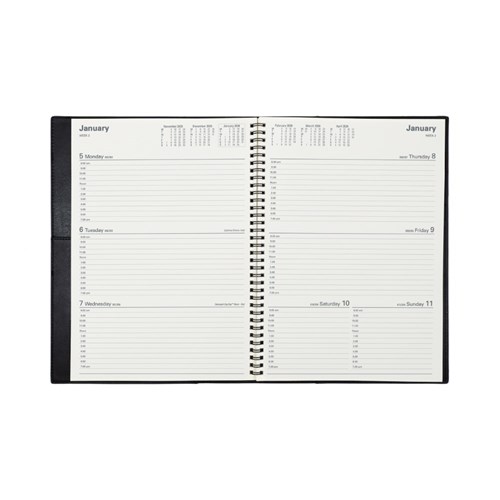 Ideal for those 'on the move' with its double wiro binding and heavily grained metallic and matt PU cover. Has a removable jacket sleeve, pen loop and internal storage pockets. Hourly appointment times. Monthly planners, staff leave and financial summary. 3 year calendars. Addresses and notes. Australian and New Zealand holidays. Current and forward year planners. Tax information.