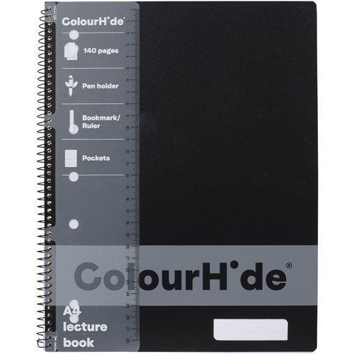 ColourHide Lecture Book A4 7 Hole Punched Side Bound 140 Page Black