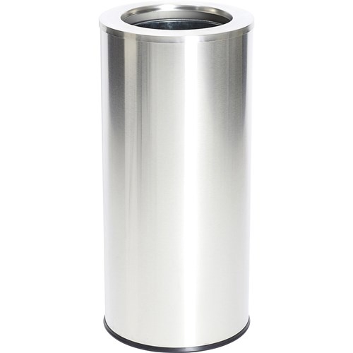 Rubber rimmed base. Ideal for use in public areas. 201 grade stainless steel. 201 grade stainless steel. Dimensions: 300 Diameter x 650mmH. Lid opening diameter: 210 mm.