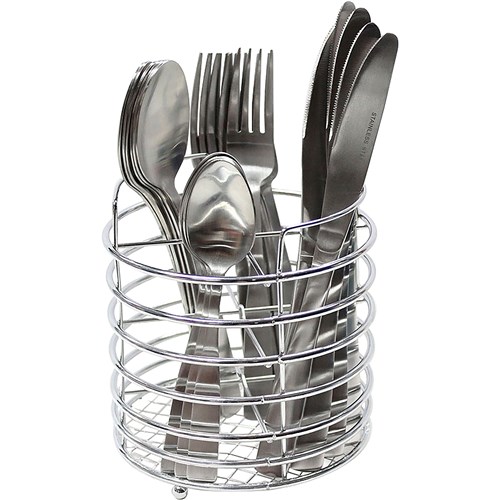 Consists of 6 knives, 6 dessert spoons, 6 table forks and 6 teaspoons. Stored in a wire caddy. Made from 18/0 grade stainless steel. Brushed finish. Dishwasher safe.