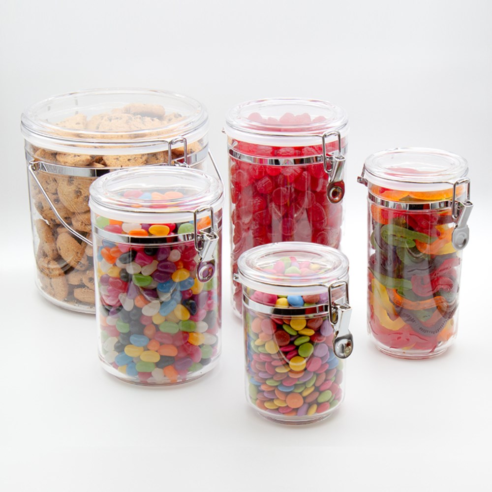 Air-tight lid with chrome clip. BPA Free. Dishwasher top rack safe. Suitable for food use as well as storing a wide variety of office and home bits and pieces. Available in a variety of convenient sizes to accommodate all needs.