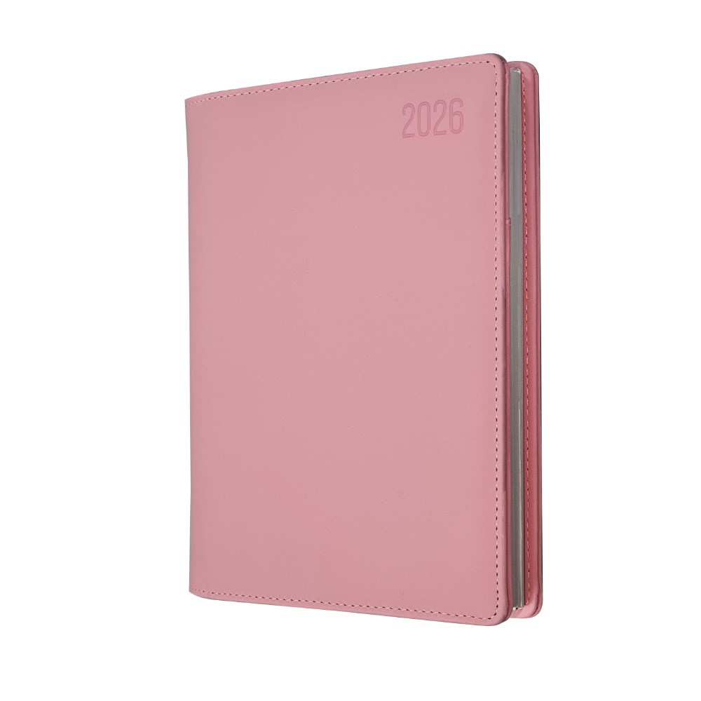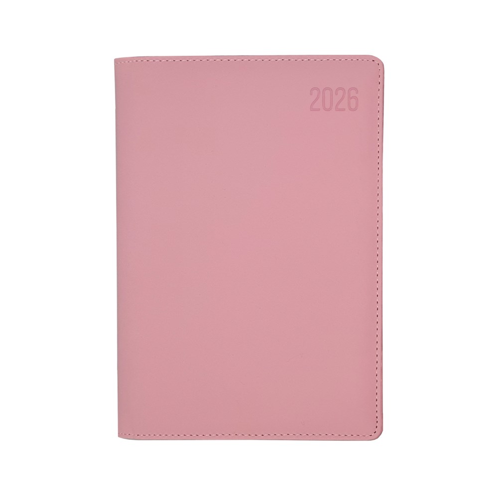Soft-touch padded cover. Lay flat wiro binding with ribbon marker. Document pocket and business card sleeve. Appointment times from 9am - 5pm hourly. Australian and New Zealand holidays. 3 year calendars. Current and forward year planners. International holidays, dialling and time zones. Staff Leave planner. Addresses and notes. Size: 210 x 148mm. FSC Certified.
