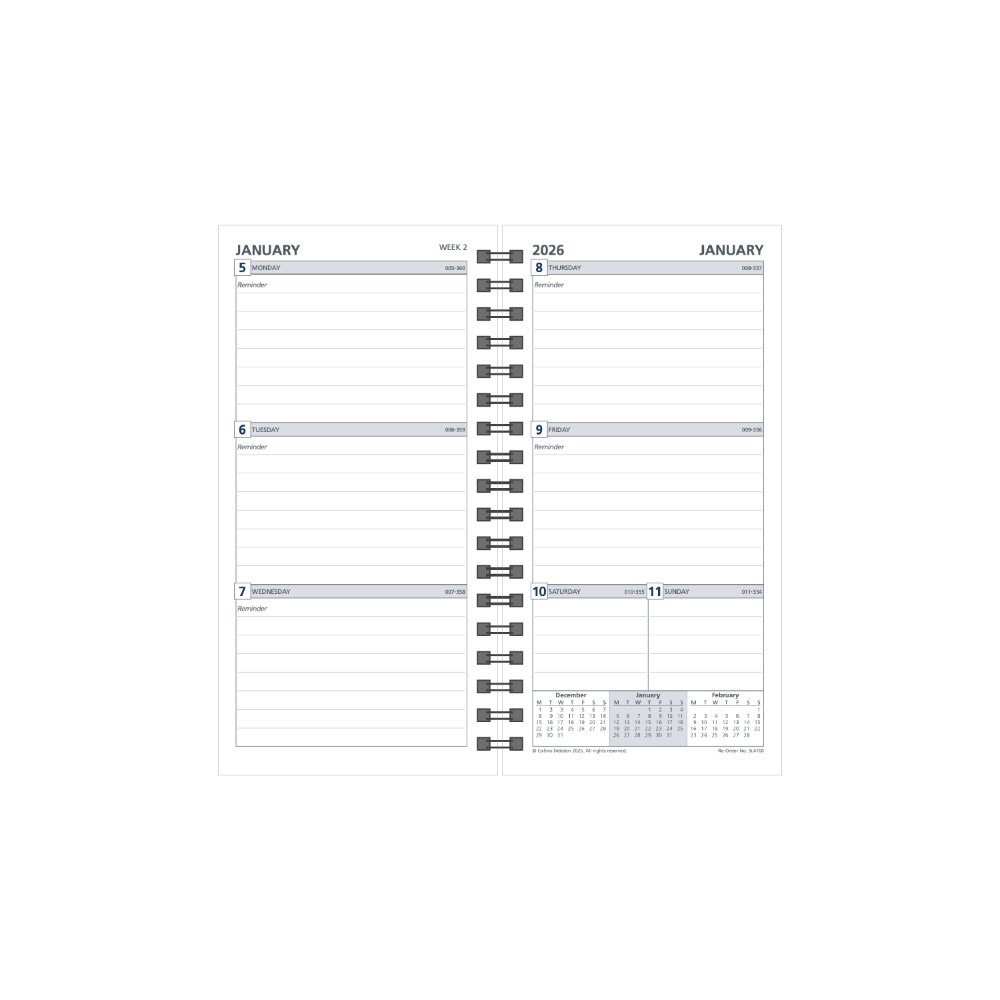 Printed on quality white paper. Collins refills will fit most leading brand organisers of a smaller size. Page Size: 164mm x 90mm. 3 year calendars. Year planner. International holidays. 2 hourly appointment time. Note pages. FSC Certified.