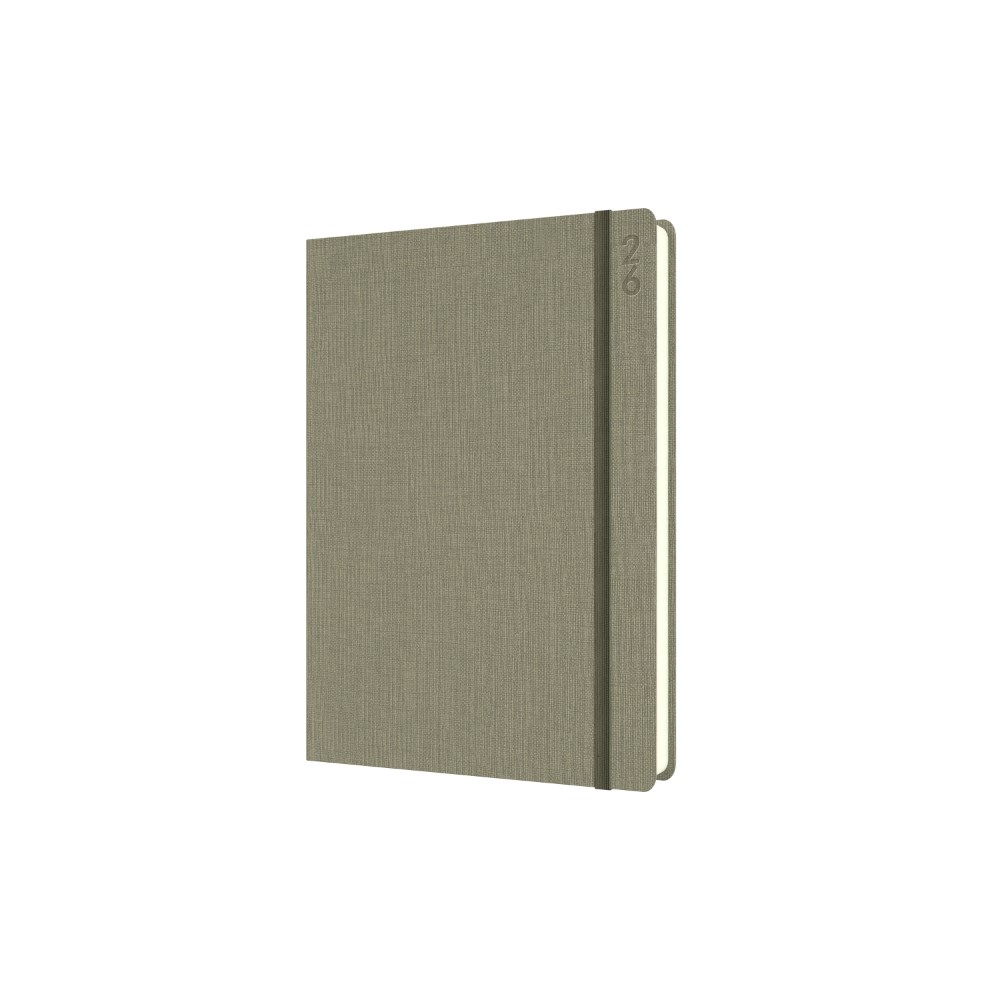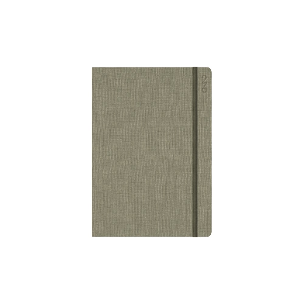 Textured fabric cover. 3 year calendars. Current and forward year planners. Appointment times 7:30am - 7:30pm, 1/2 hourly. Financial summary. International holidays. International dialling. Lay flat opening, ribbon marker and elastic closure. Size: 210 x 148mm. FSC Certified.