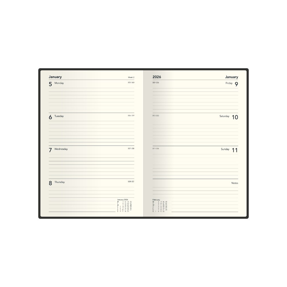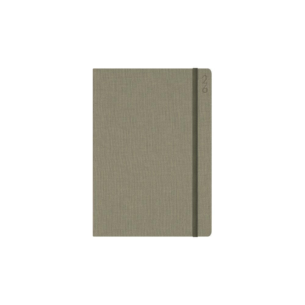 Textured fabric cover. 3 year calendars. Current and forward year planners. Financial summary. International holidays. International dialling. Lay flat opening, ribbon marker and elastic closure. Size: 210 x 148mm. FSC Certified.