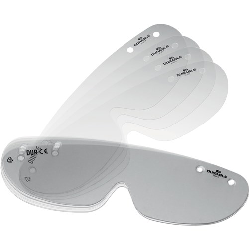 Replacement shields for safety glasses. See product 2572701. The crystal-clear PET (polyethylene terephthalate) films are easy to attach. In combination with the frames the shields comply with the following Union regulations. Regulation (EU) 2016/425 Personal Protective Equipment (PPE) Cat. II and Directive 2001/95/EC General Product Safety.