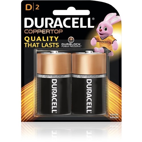 • Duracell Coppertop Alkaline Battery Size D Pack Of 2