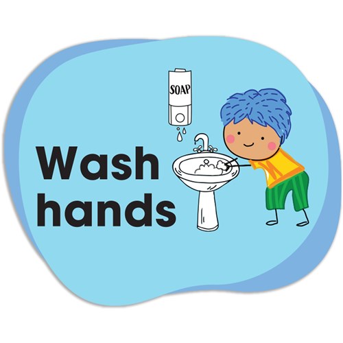 Durus School Sign Outdoor Floor Adhesive Wash Hands 200W x 250mmH Blue