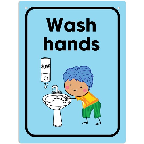 Durus School Sign Wall Mount Wash Hands 225W x 300mmH Polypropylene Blue