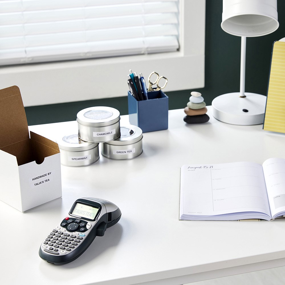 Kit Includes: 1 x LT-100H label machine & 3 12x4mm bonus tapes - 1 x White Paper Labels, 1 x White Plastic Labels, 1 x Clear Plastic Labels. See what your label will look like before you print on the large LCD display. Customise labels with 7 font types and 5 text sizes, as well as 195 symbols. Save up to 9 of your most frequently used labels. Print paper, plastic and iron-on labels in 12mm widths. Powered by 4 x AA batteries. (Not included). 1 Year Manufacturer's Warranty.