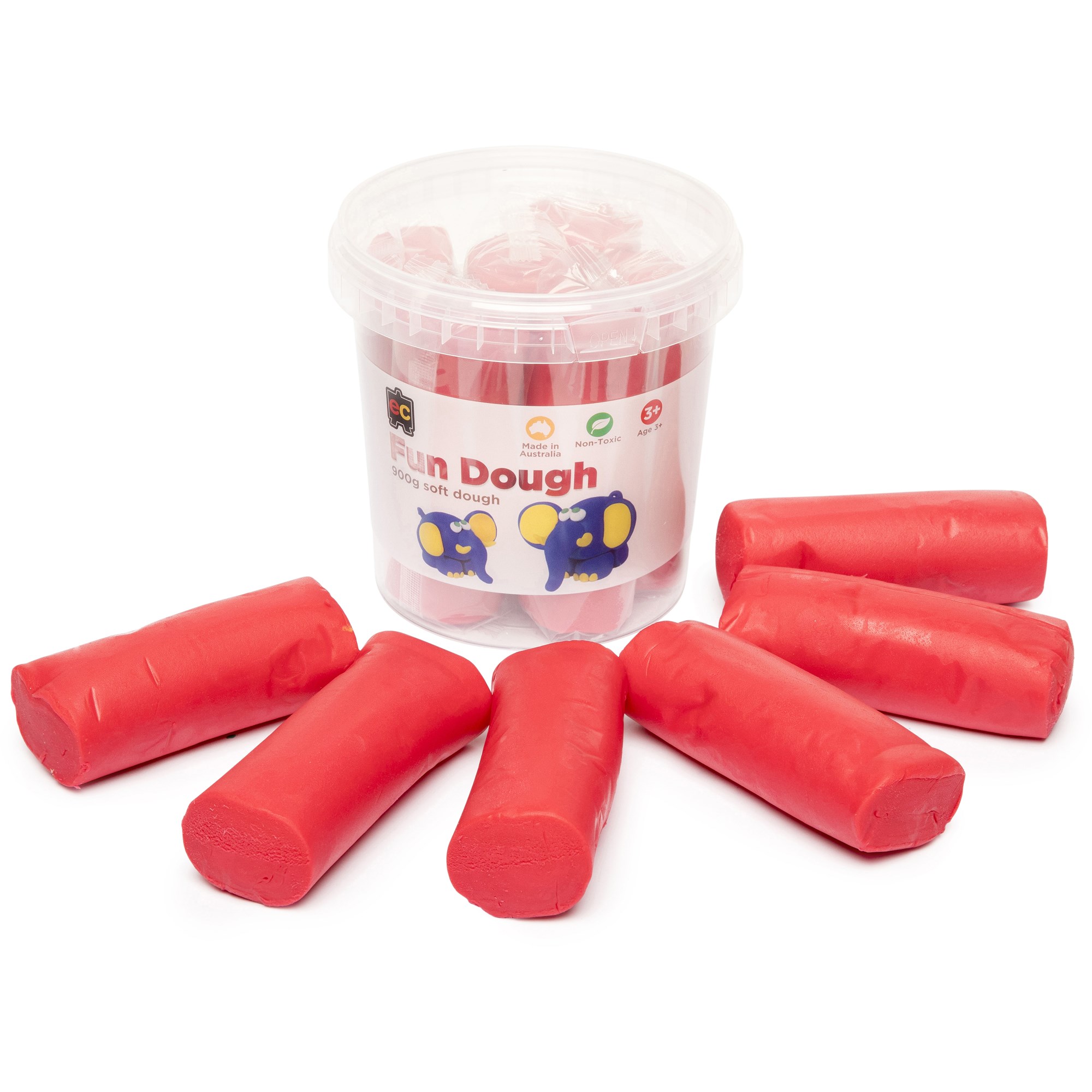 Educational Colours Australian Made Fun Dough is safe, non-toxic and washable, making it ideal for young children and early model making Bright colours make it appealing for children to create fun artwork using their hands and dough tools Playing with dough is a sensory experience and also helps children develop hand to eye coordination and fine motor skills, making this a great activity for the classroom and home Large, re-usable tubs for easy storage available in Red