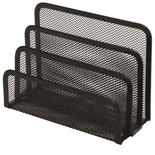 Stylish 3 compartment file sorter. Ideal for storing documents and files. Sturdy steel mesh. Perfect for the home or in the office. Dimensions: 170W x 80L x 135mmH.