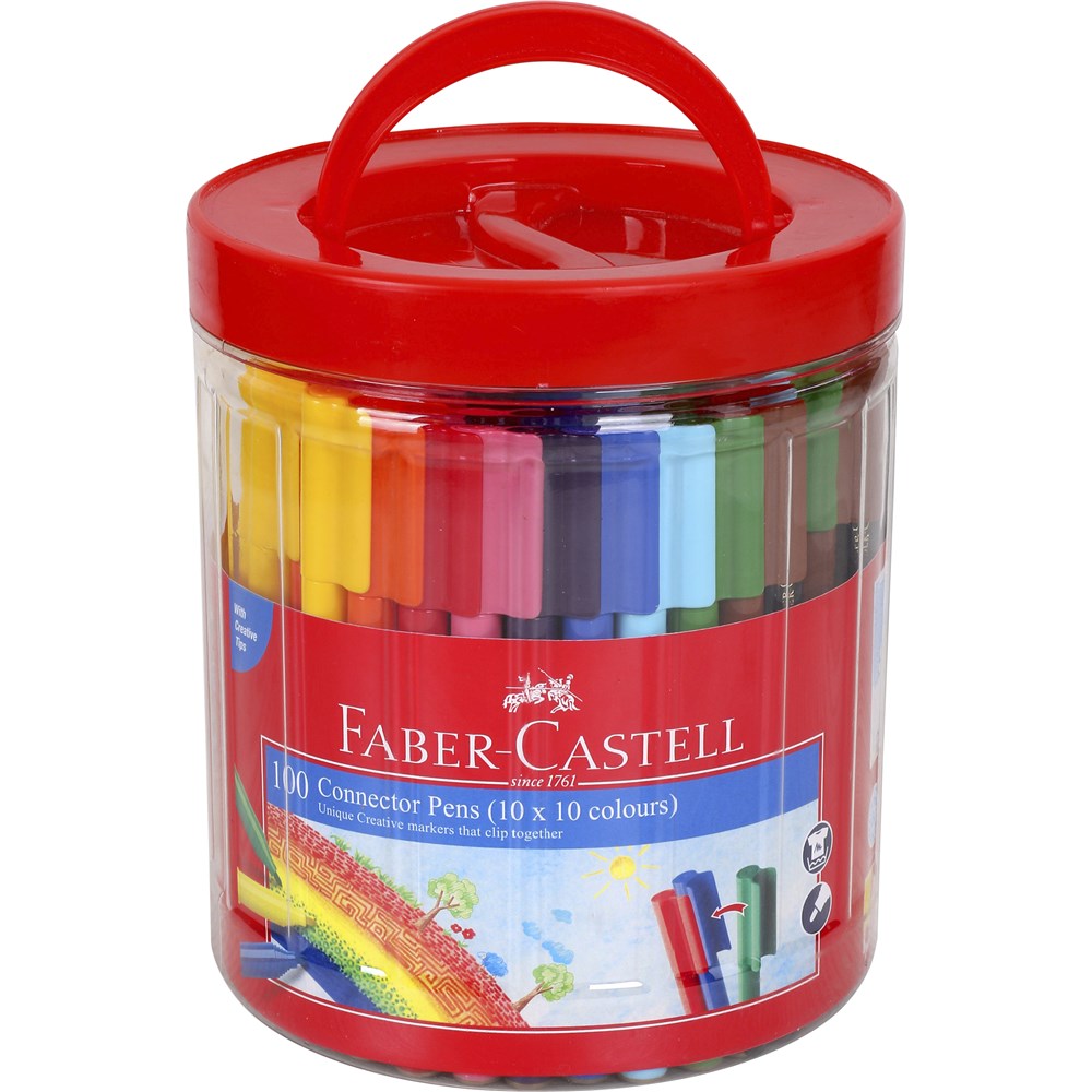 • Faber-Castell Connector Pen Colour Markers Assorted Tub of 100