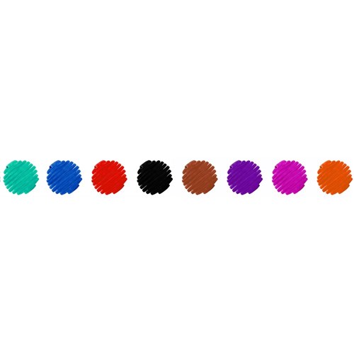 • 8 bright, vibrant colours in Red, Pink, Orange, Green, Blue, Violet, Brown and Black