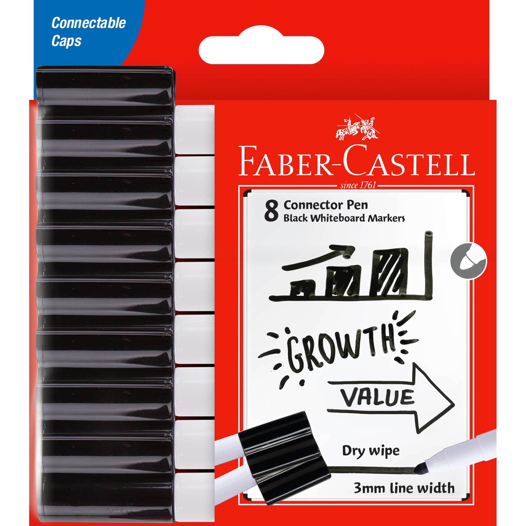 • Includes 8 BLACK ONLY Faber-Castell Connector Pen Whiteboard Markers
