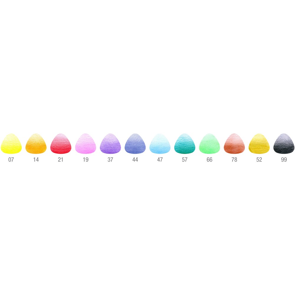 Super colour rich 3.8mm leads. Leads specially bonded to prevent breakage. Triangular shape gives better control and comfort. Sharpener included and name space provided.
