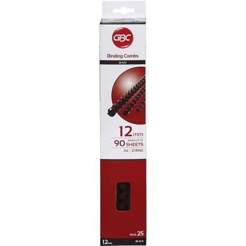 GBC Plastic Binding Comb 12mm 21 Loop 90 Sheets Capacity Black Pack Of 25