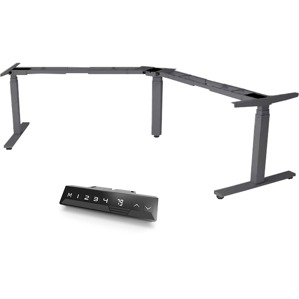 Frame Size: 1000-1800W x 1000-1800W x 700D x 700-1200mmH. Depth is including legs - actual desk top frame depth is 575mm. Suits top size from 1000 -1800mmW. Minimum depth of the desktop recommended is 600mm. 25mm thick table top is recommended. Heavy duty steel construction ensuring increased stability. Easy to use 4 stage memory storage height. Auto stop function. Load capacity: 1500N, maximum lift capacity is 150kg, speed at full load: 35mm/S. All adjustments for the height are infinitely locking. Solid steel frame construction with a powder coated finish. 3 motors. Some assembly required. AFRDI approved. 5 Year Manufacturer's Warranty On Electrical Components. 10 Year Manufacturer's Warranty On Table Frame. Delivery, installation and assembly charges may apply to furniture. Please enquire to confirm.