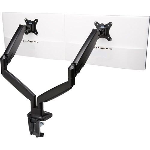 One-Touch Adjustable Arms with built-in gas spring simplifies height adjustment(170mm-505mm) and provides 180 degree swivel and monitor rotation. Has +/- 90 degree tilt adjustment and allows monitor to smoothly move up, down, forward and back for full motion articulation. Stability focused design supports 13-32 inch flat or curved monitors weighing up to 9kg and ensures monitors are stable and steady in any position. SmartFit® System simplifies ideal ergonomic height positioning using scientifically proven research. Easy to Install with quick release detachable VESA plate , c-clamp and grommet installation options. Cable Management System keeps monitor cables organized for a tidier workspace. Easily switch from landscape to portrait mode. Kensington Durability meets ANSI/BIFMA performance and safety standards.
