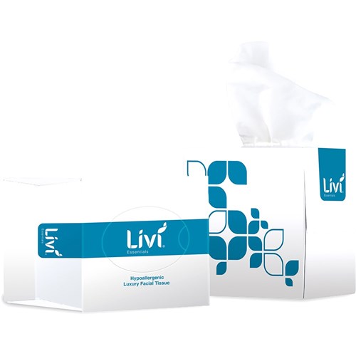Livi Essentials Facial Tissues Luxury Hypoallergenic Cube 2 Ply 90 Sheets
