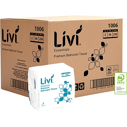 Livi Essentials Premium Toilet Tissue Interleaved 2 Ply 250 Sheets Box Of 36