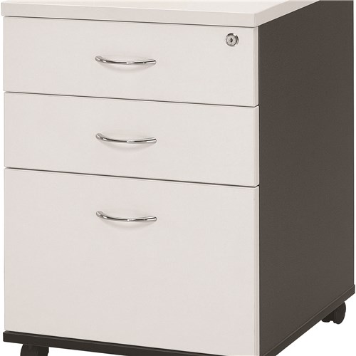 Logan Fixed Pedestal 3 Drawer 476 x 470D x 450mmH White And Ironstone 525754 In Stock Low Stock Low Stock Please See Attributes