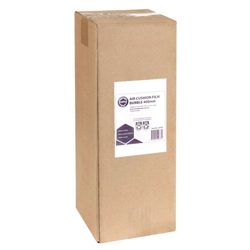 Bubble film for wrapping or void fill use in boxes. 350 metres in length. 400mm wide film. Perforated every 330mm.