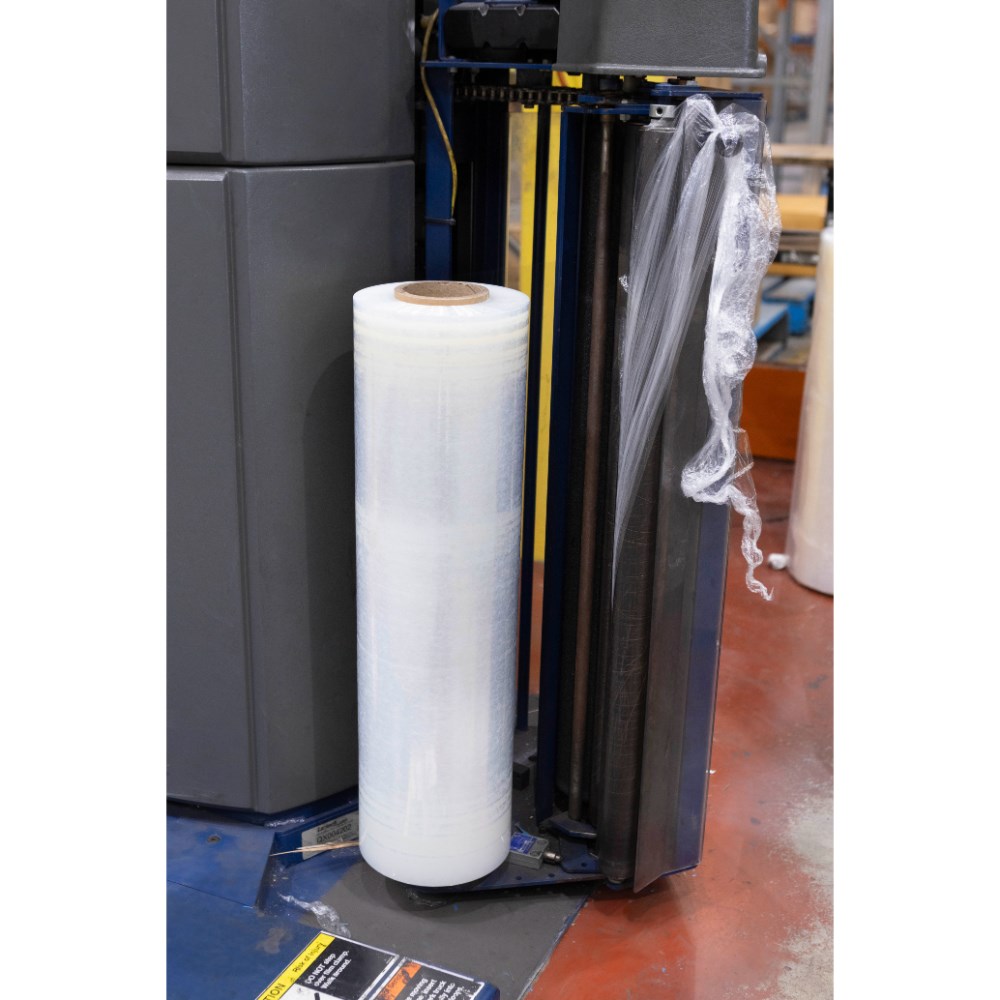 Cast film provides a higher level of transparency for easy identification of your stored product and scanning of barcodes through the wrap. Cast film is quiet to dispense. Secures and stabilises cartons or products ready for storage or shipping. Larger rolls for use in pallet wrap machines.