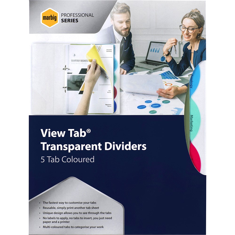 • Marbig Professional Series Dividers A4 5 View Tab Transparent Multi Colour
