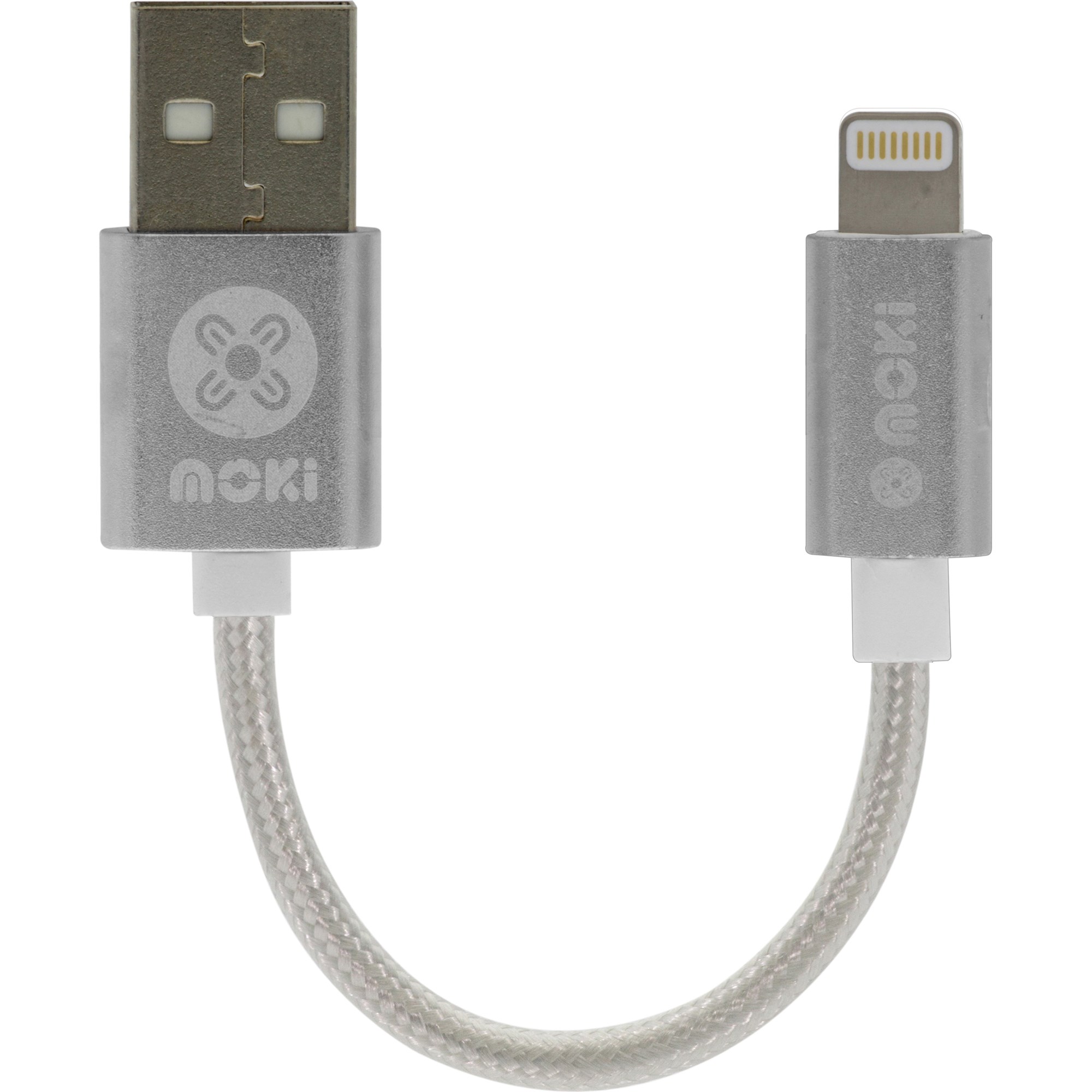 Moki USB To Lightning SynCharge Cable 10cm Braided Silver