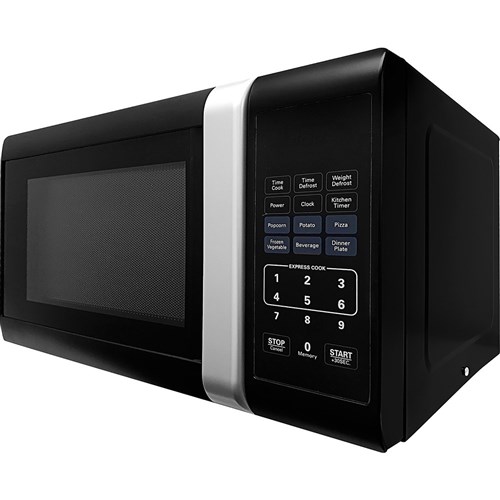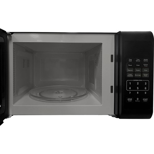 Easy clean black conventional 23L microwave with LED display and grey interior, speedy one touch cooking and incremental power settings. Digital LED display with clock function. One touch cooking. Pull handle door opening. Power: 800 W. Dimensions: 485L x 392W x 293mmH. Turntable diameter: 270 mm. AUS/NZ Electrical Safety Standards Approved. 2 Year Manufacturer's Warranty.