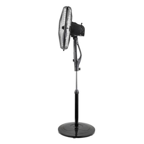 5 fan blades. 6 speed settings. Metal line grill. Control pad with status indicators. Fan height extension: 1100 to 1300mmH. Oscillating. Tiltable head. Weighted round base. Base diameter: 400mm. 240 Volt A.C. mains. 30 watt power. Cord 1.5 metres. AUS/NZ Electrical Safety Standards Approved. 1 Year Manufacturer's Warranty. Delivery charges may apply, please enquire to confirm.