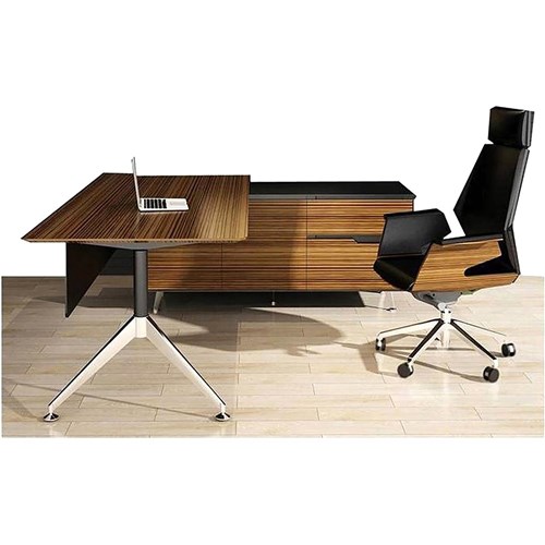 Executive workstation that come with a right hand side return, built-in cable tray, Hettich damping track, DTC damping hinge, timber veneer top, shark nose edging, aluminium feet. Shark nose edging, aluminium feet and built-in cable tray. Buffet return comes with 2 drawers & 2 doors, soft closing, lockable drawers. 3 Year Manufacturer's Warranty. Delivery, installation and assembly charges may apply to furniture. Please enquire to confirm.