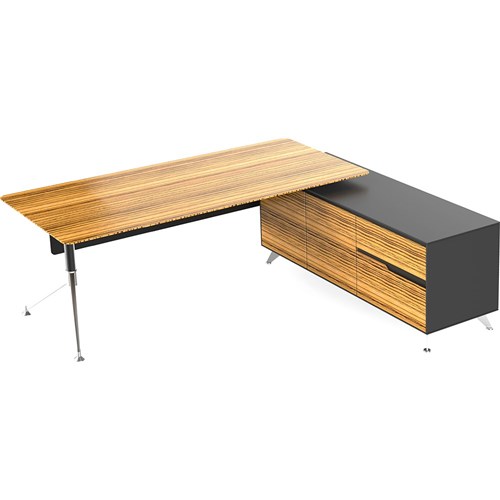 Novara Executive Desk Right Hand Return 2350W x 1850D x 750mmH Zebrano And Black